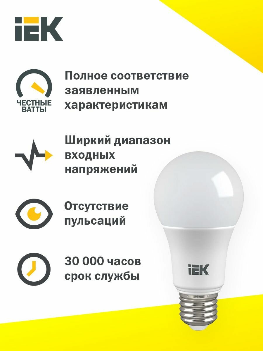 Лампа светодиодная IEK A60 шар 12Вт 24-48В 4000К E27 информация: