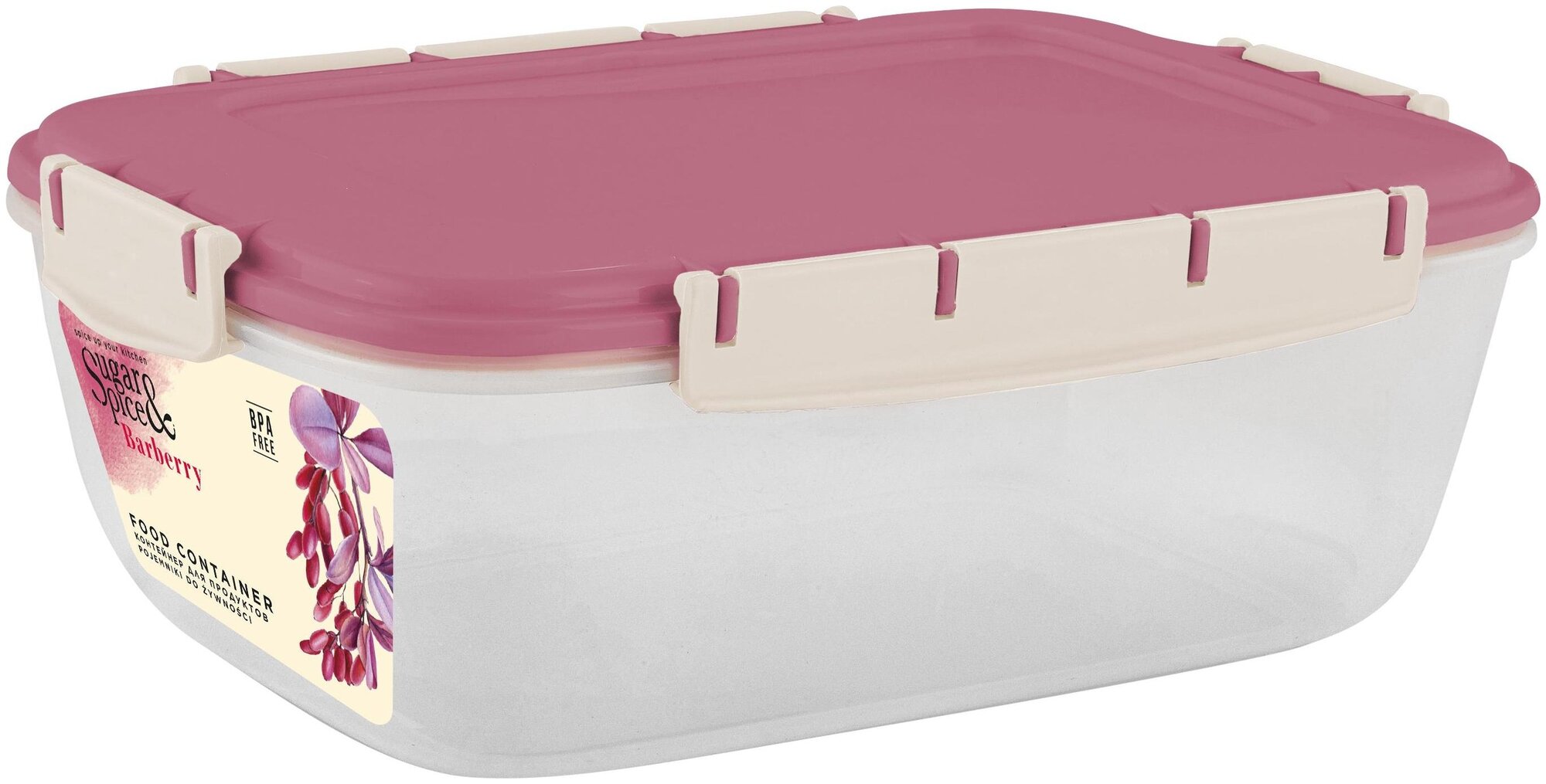 Контейнер для продуктов Sugar&Spice Barberry герметичный 1,8л прямоугольный брусника