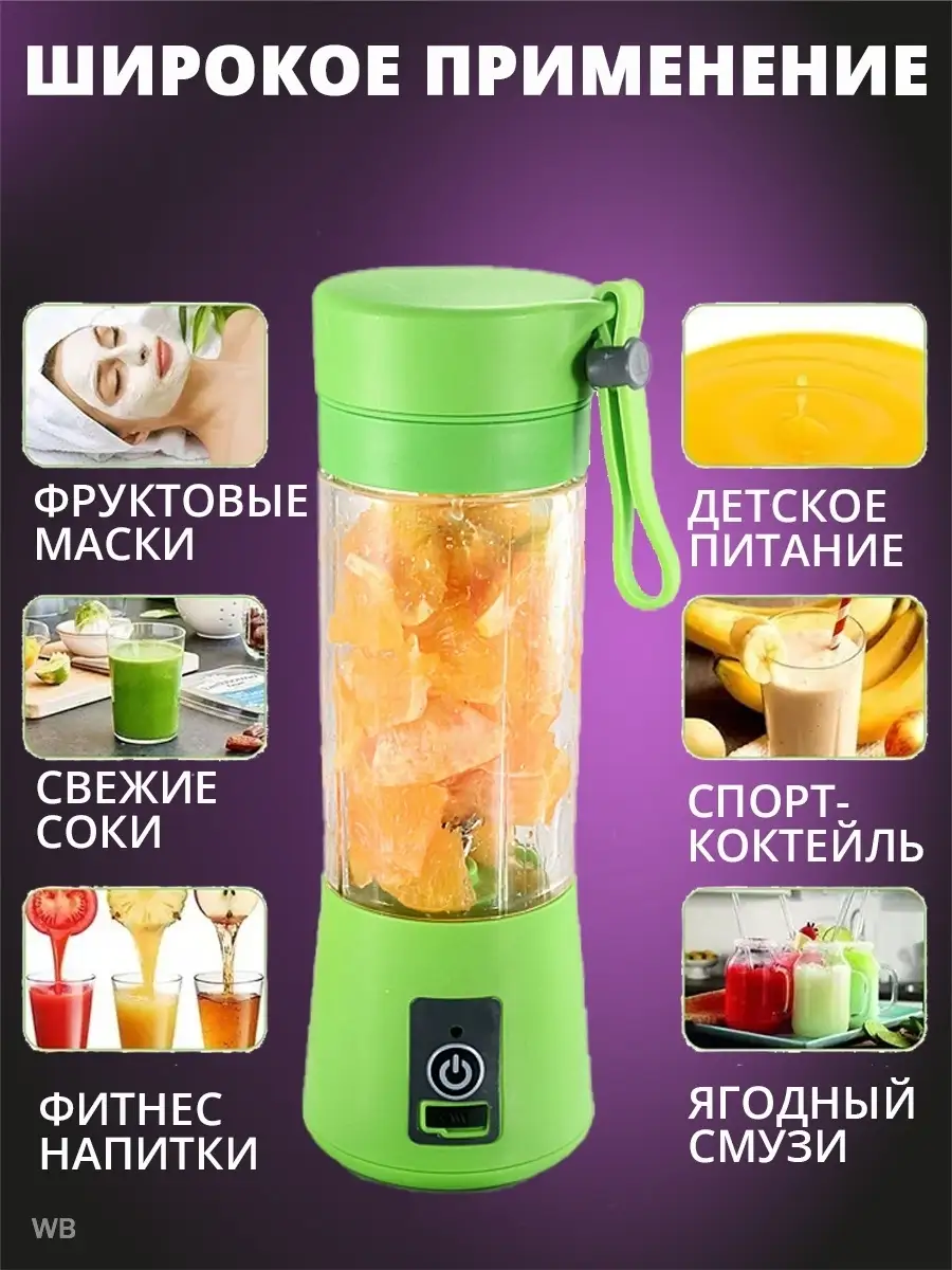 Отзывы на Блендер для смузи, коктейлей портативный, шейкер беспроводной, фитнес бутылка , мини миксер зелёный