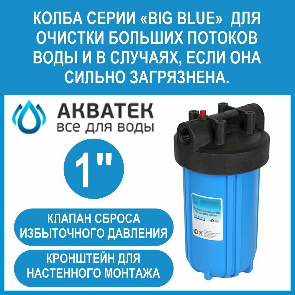 Корпус/колба большой 10ВВ Акватек 1" (синий корпус) с кронштейном информация: