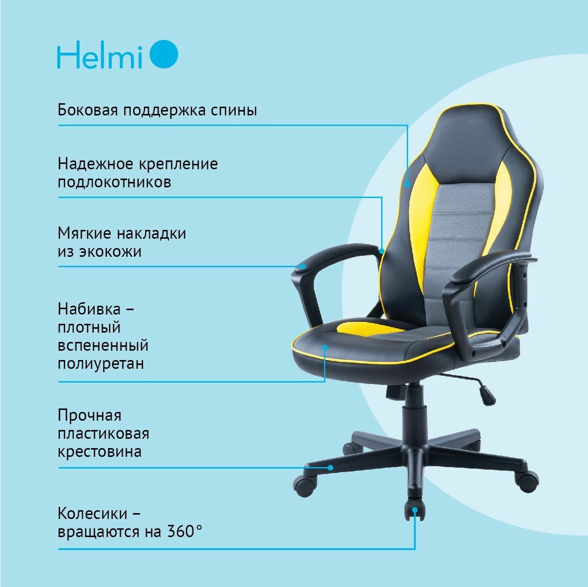 10 цен на Кресло игровое Helmi "Rally", экокожа черная, серая, желтая (297636)