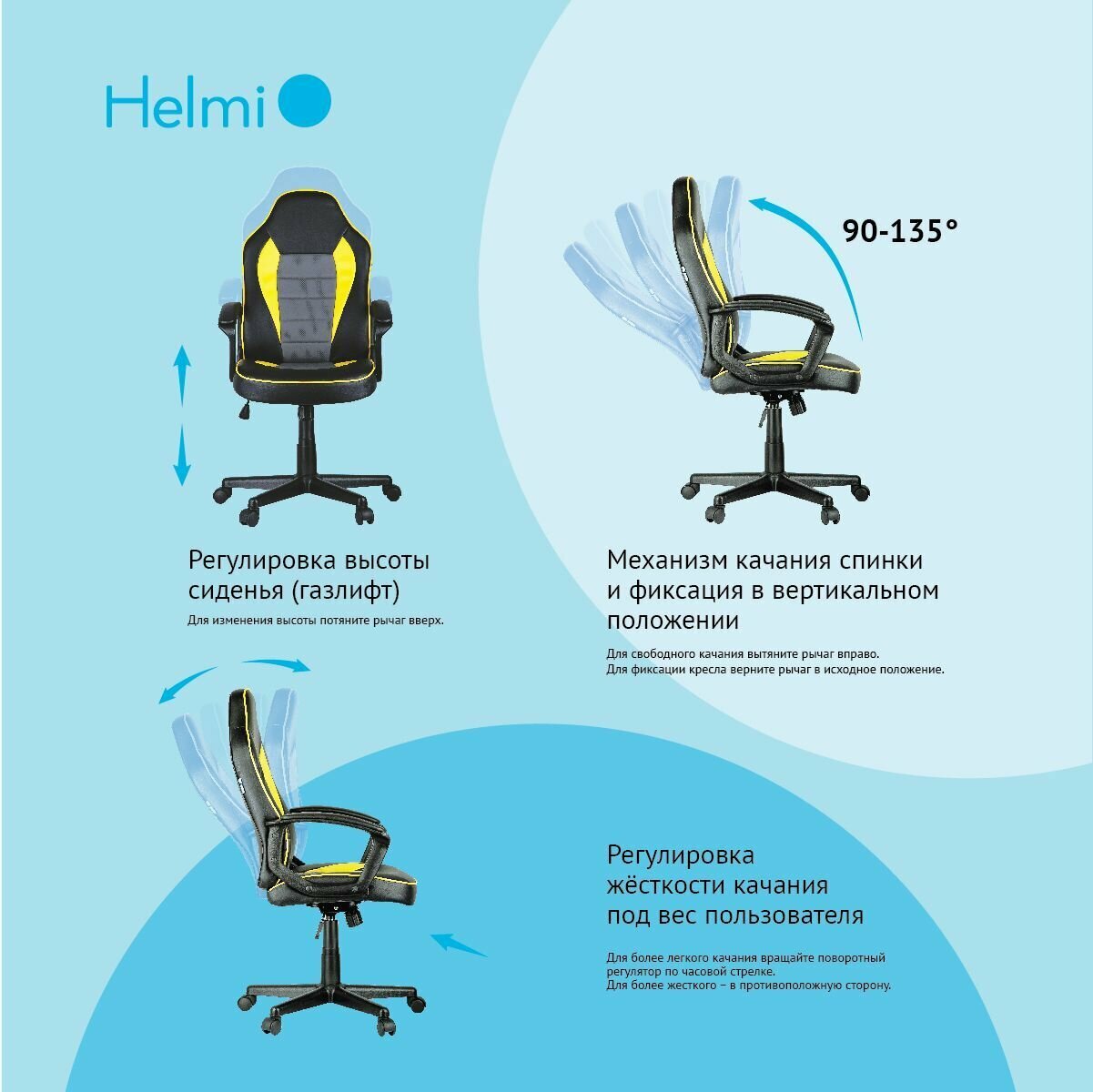 Отзывы на Кресло игровое Helmi "Rally", экокожа черная, серая, желтая (297636)