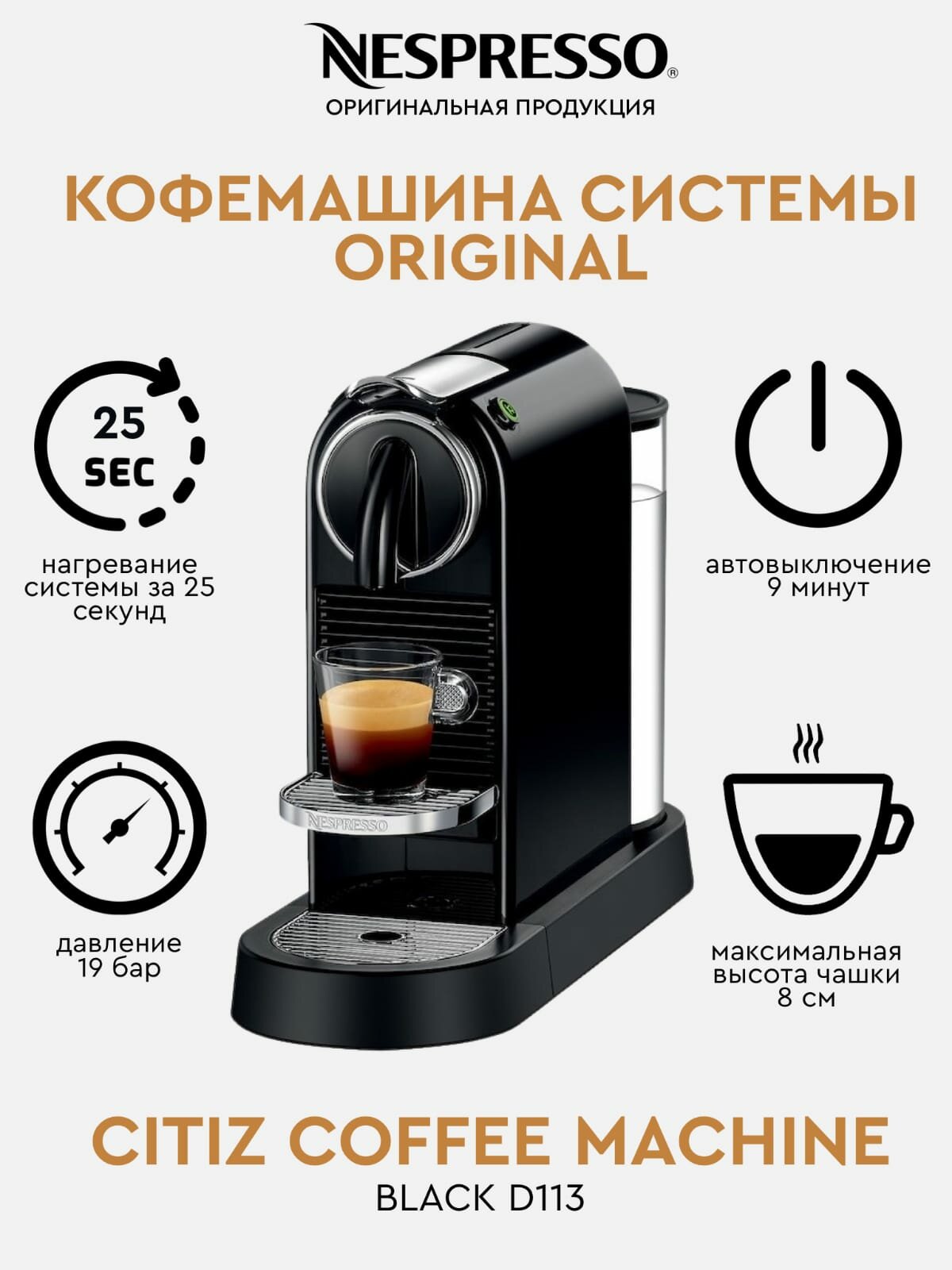 Кофемашина Nespresso CitiZ D113 Black (D113-EU-BK-NE2) информация: