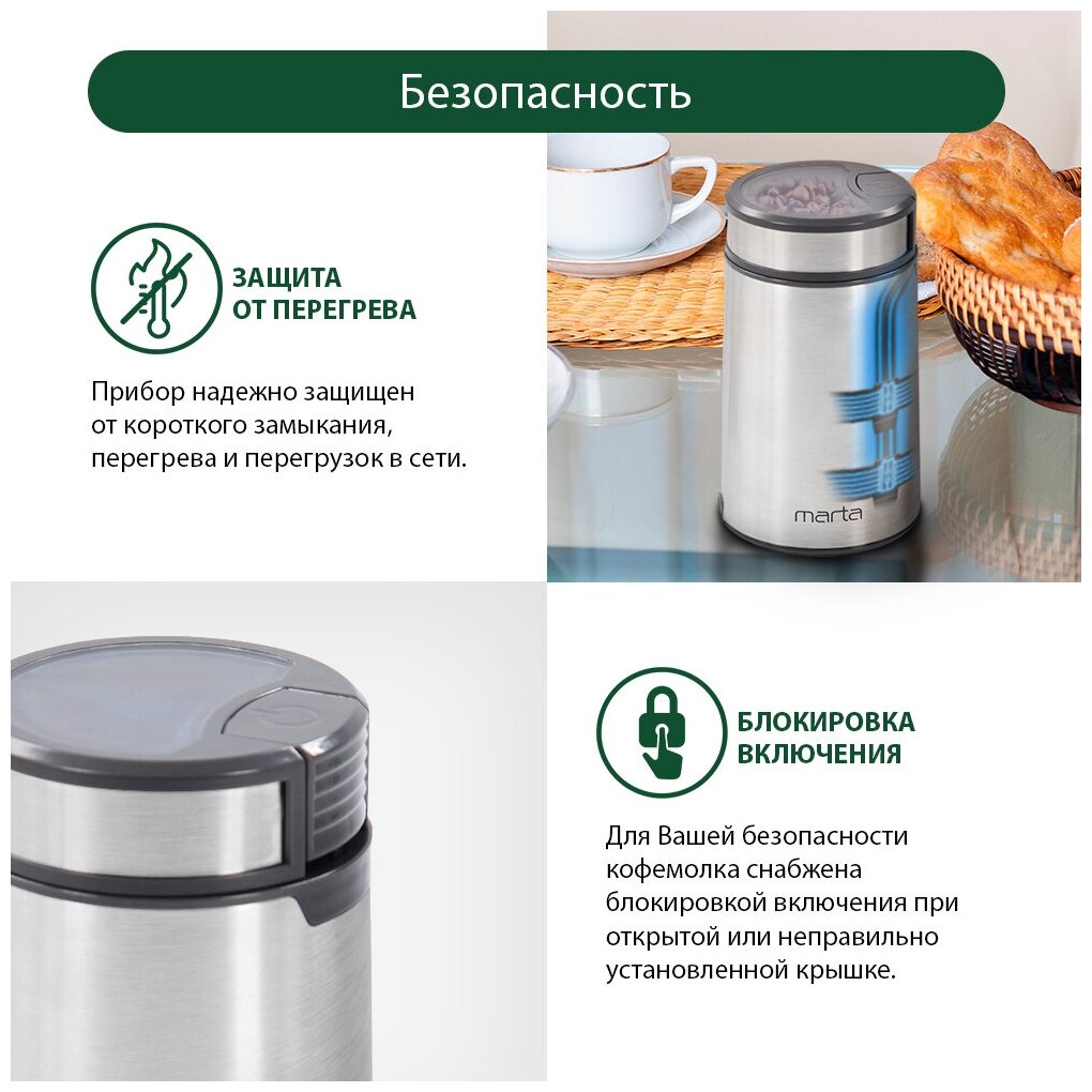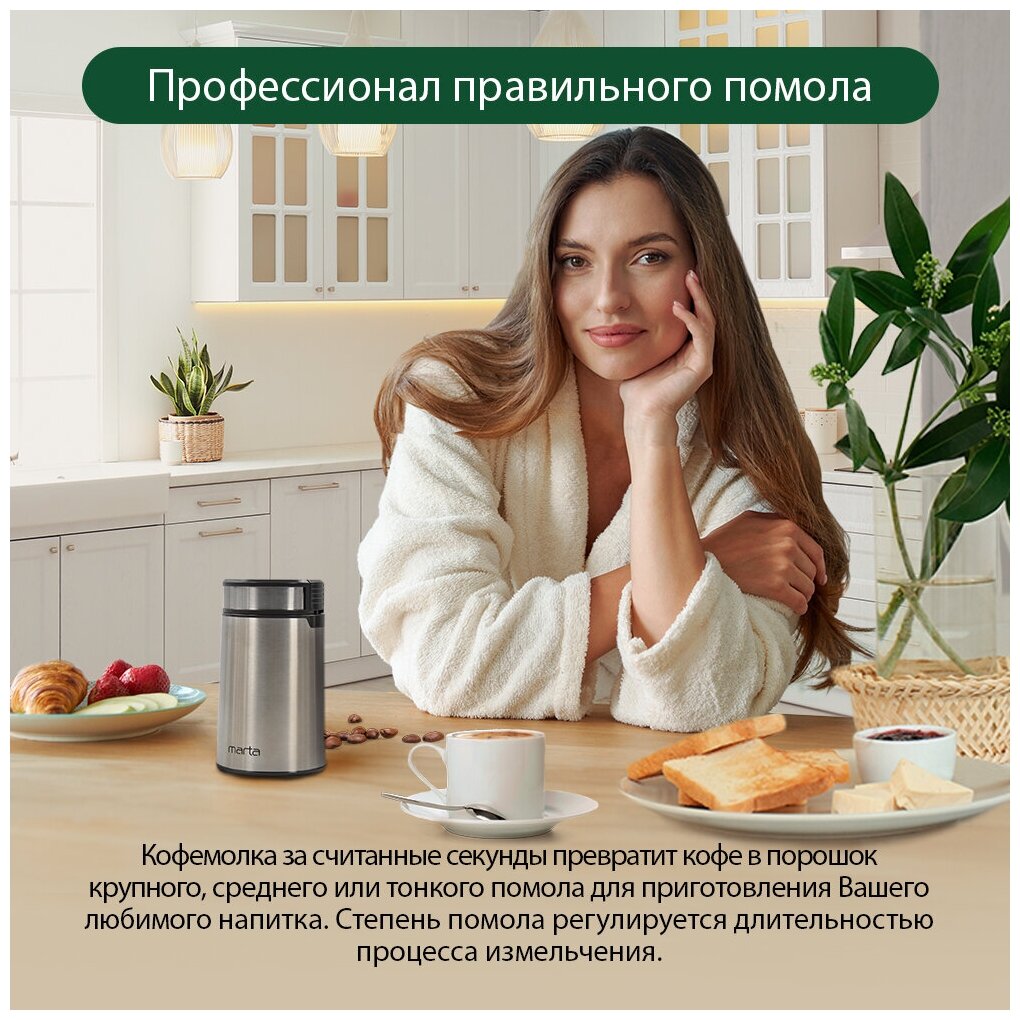 MARTA MT-CG2180B серый жемчуг кофемолка информация: