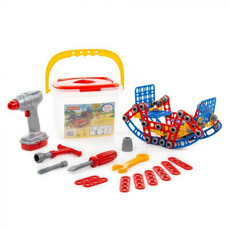 Изобретатель - Качели 2 конструктор с гайками и шуруповёртом 122 детали в ведре для детей от 3 лет информация: