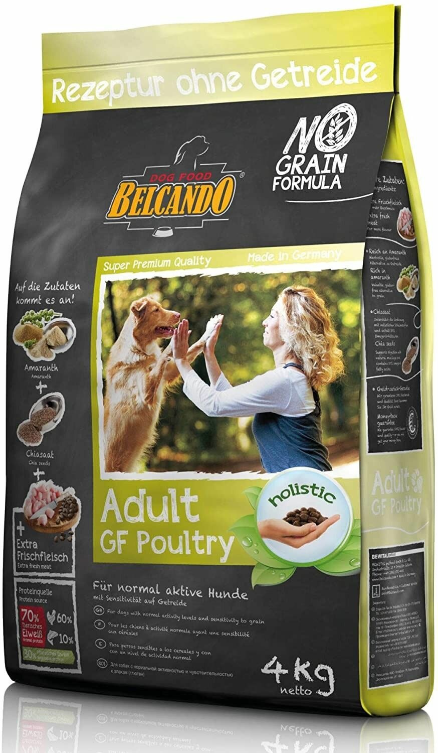 Сухой корм для собак Belcando беззерновой, домашняя птица 4 кг (для средних и крупных пород) информация: