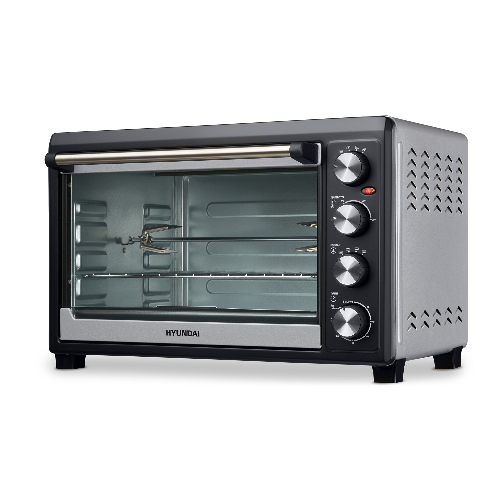Мини-печь Hyundai MIO-HY075, серебристо-черная, конвекция, 38л