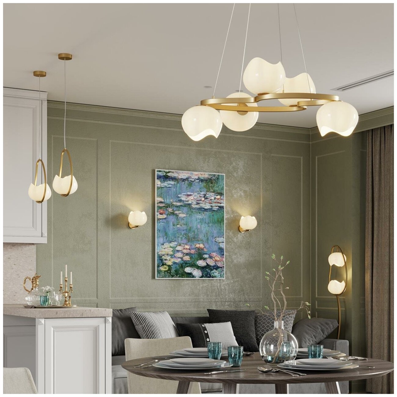 4873/2W MODERN ODL_EX22 85 золотой/белый/стекло Бра E14 2*40W WATERLILY