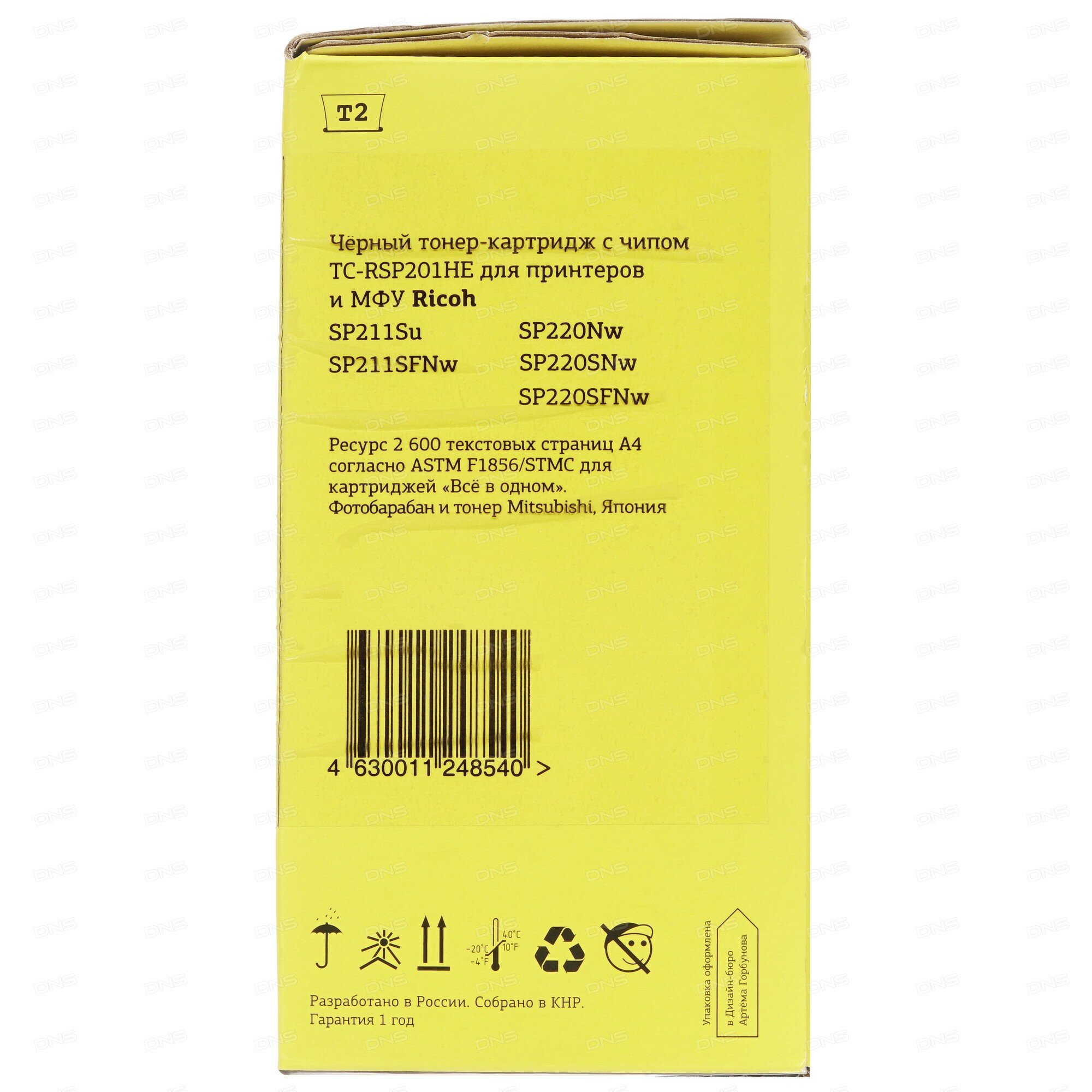 T2 SP201HE/40 Картридж TC-RSP201HE для Ricoh Aficio SP211SU/SP213SFNw/SP220Nw/SP220SNw/SP220SFNw (2600стр.) чёрный, с чипом