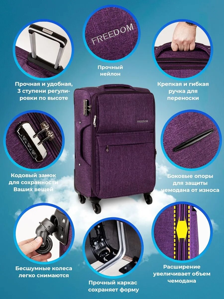 10 цен на Чемодан тканевый на колесах средний размер M