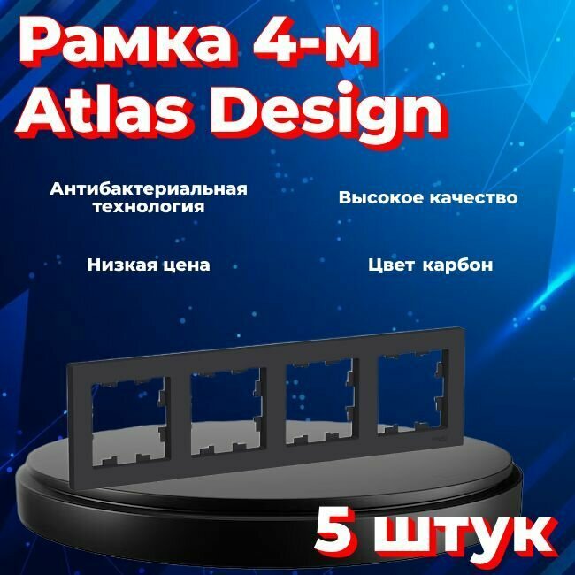 Рамка 4-постовая для розеток и выключателей Черная (Карбон) AtlasDesign (Атлас Дизайн) Schneider Electric ATN001004 5шт информация: