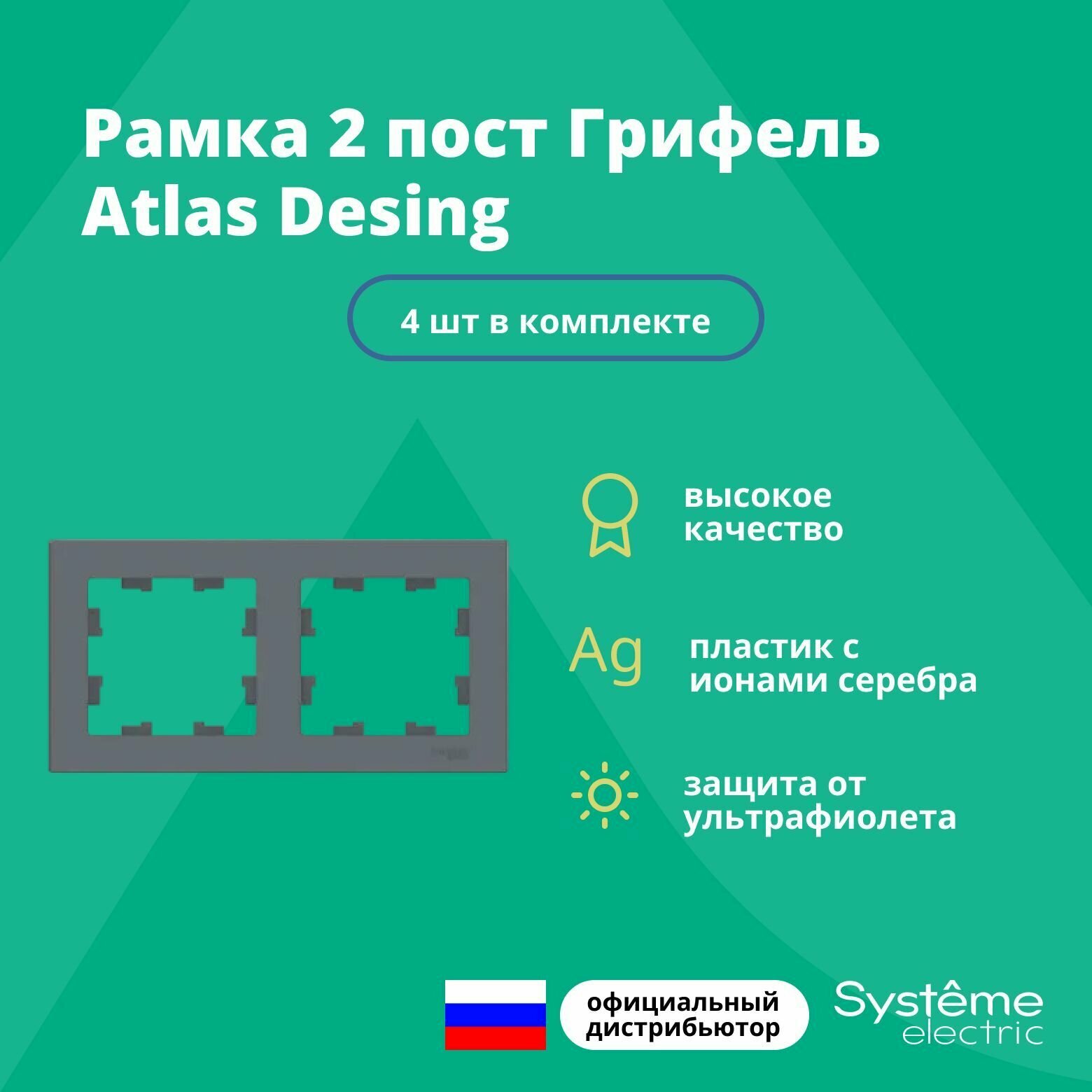 Рамка Systeme Electric Atlas Design двойная для розеток и выключателей грифель ATN000702 - 3 шт. 1 792 ₽