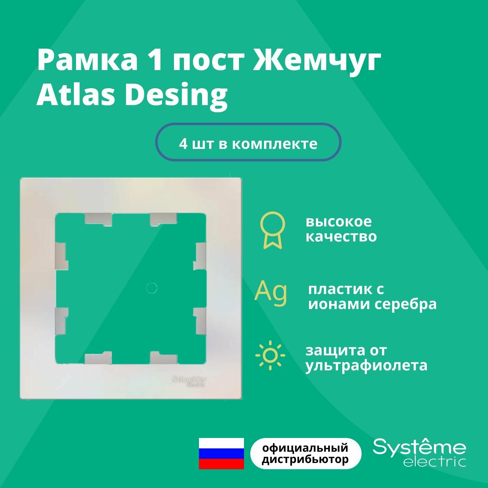 Рамка для розетки выключателя одинарная Schneider Electric (Systeme Electric) Atlas Design Антибактериальное покрытие жемчуг ATN000401 4шт информация: