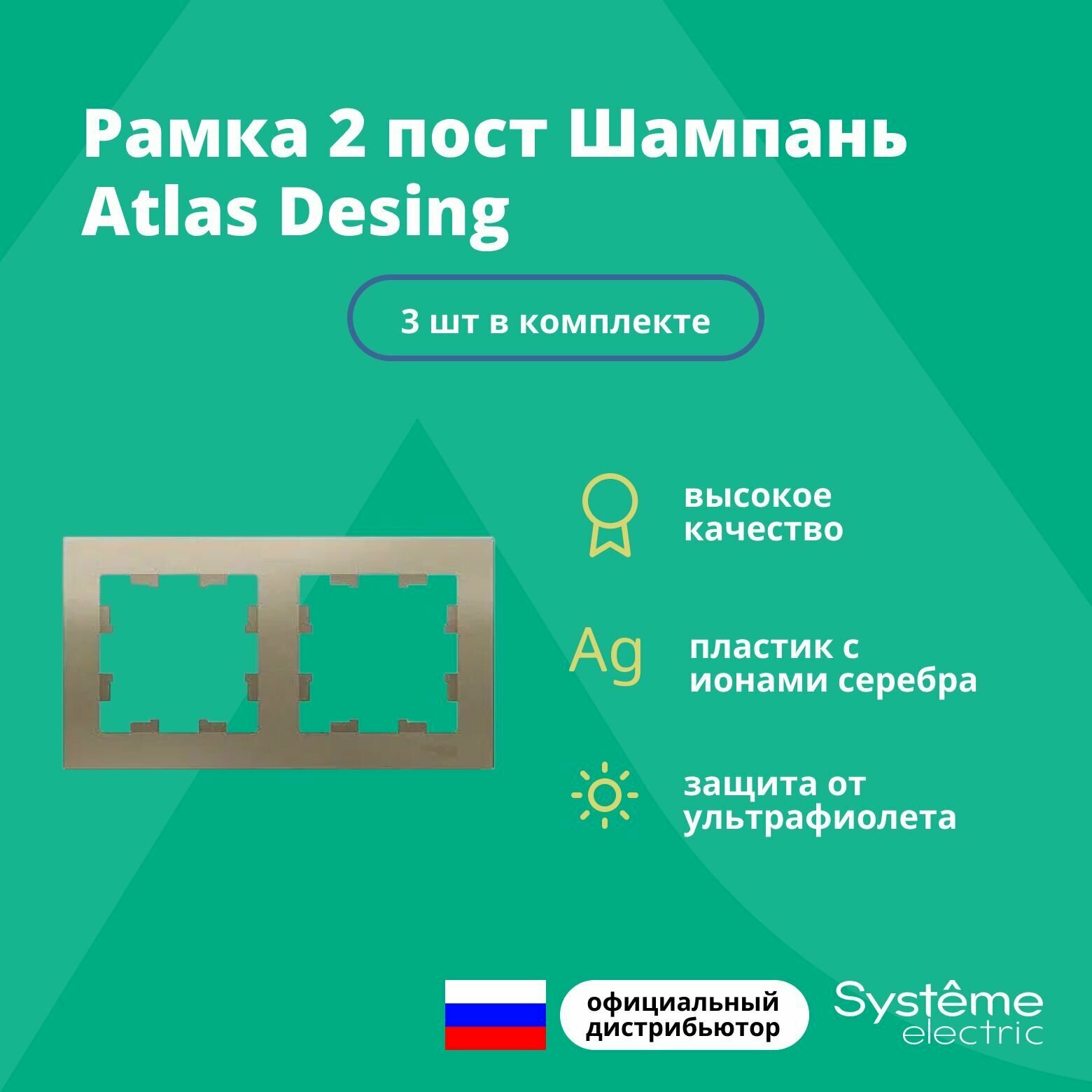 Рамка для розетки выключателя двойная Schneider Electric (Systeme Electric) Atlas Design Антибактериальное покрытие шампань ATN000502 3шт информация: