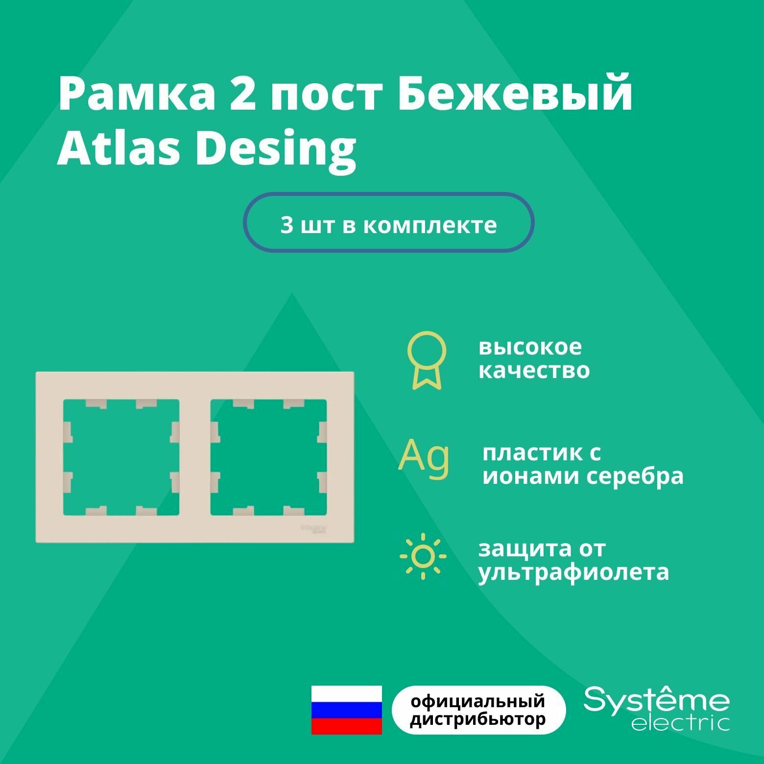 Рамка для розетки выключателя двойная Schneider Electric (Systeme Electric) Atlas Design Антибактериальное покрытие бежевый ATN000202 3шт информация: