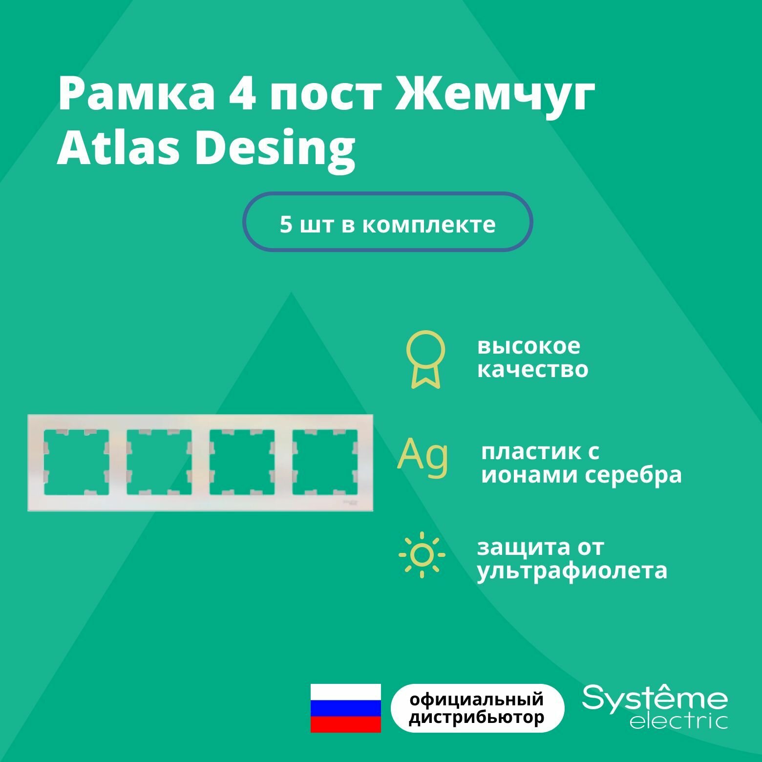 Рамка для розетки выключателя четверная Schneider Electric (Systeme Electric) Atlas Design Антибактериальное покрытие жемчуг ATN000404 5шт информация: