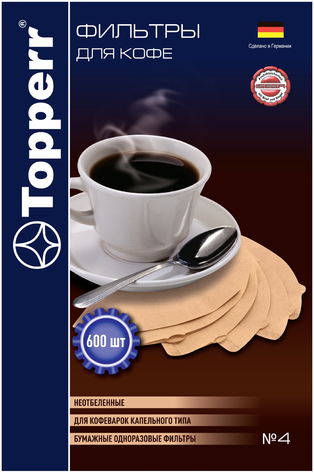 Topperr фильтр бумажный для кофеварок №4, неотбеленный, 600 шт., 3066 информация: