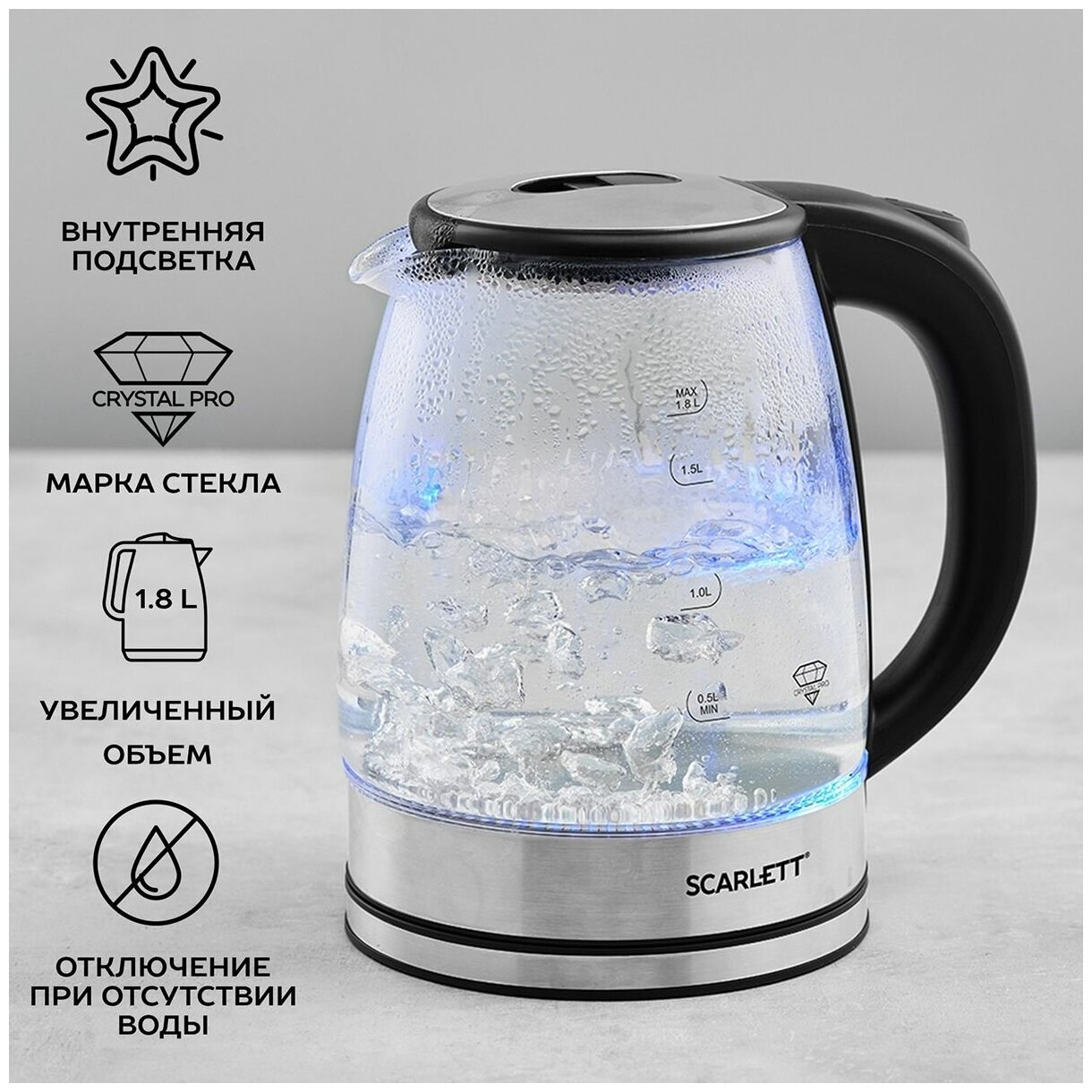 Чайник электрический Scarlett SC-EK27G70, 1800 Вт, объем 1.8 л , марка стекла crystal pro 1 231 ₽