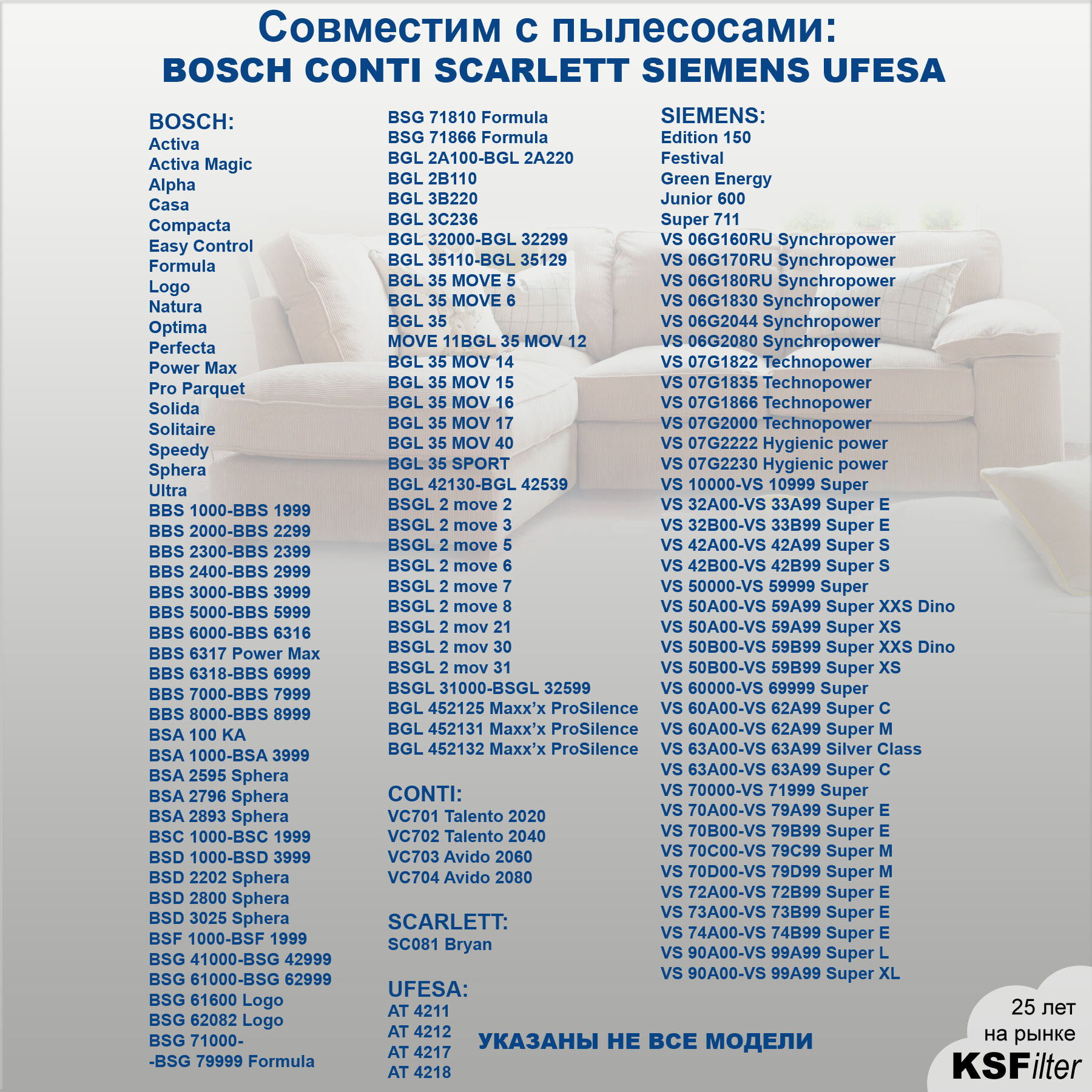 | Совместимые модели | BOSCH, CONTI, SCARLETT, SIEMENS, UFESA |