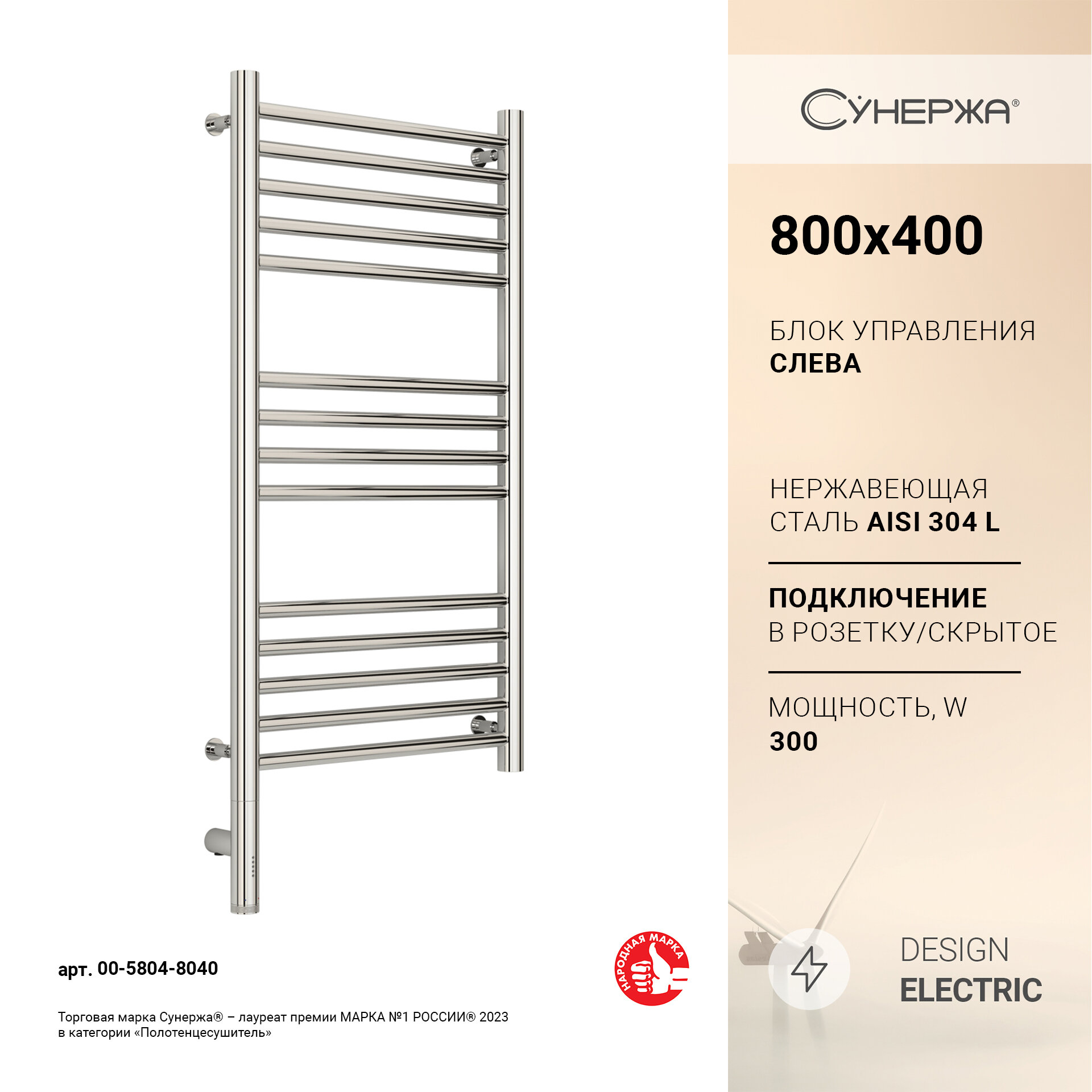 Электрический полотенцесушитель Сунержа Богема 3.0 прямая 800x400 МЭМ Лев. шампань арт. 020-5804-8040