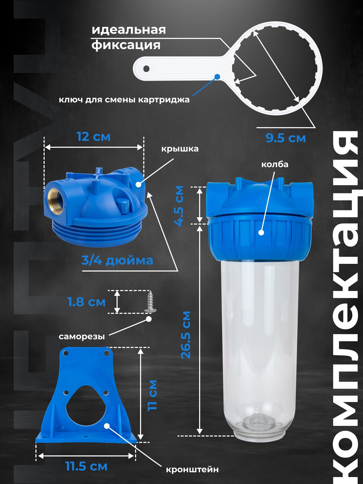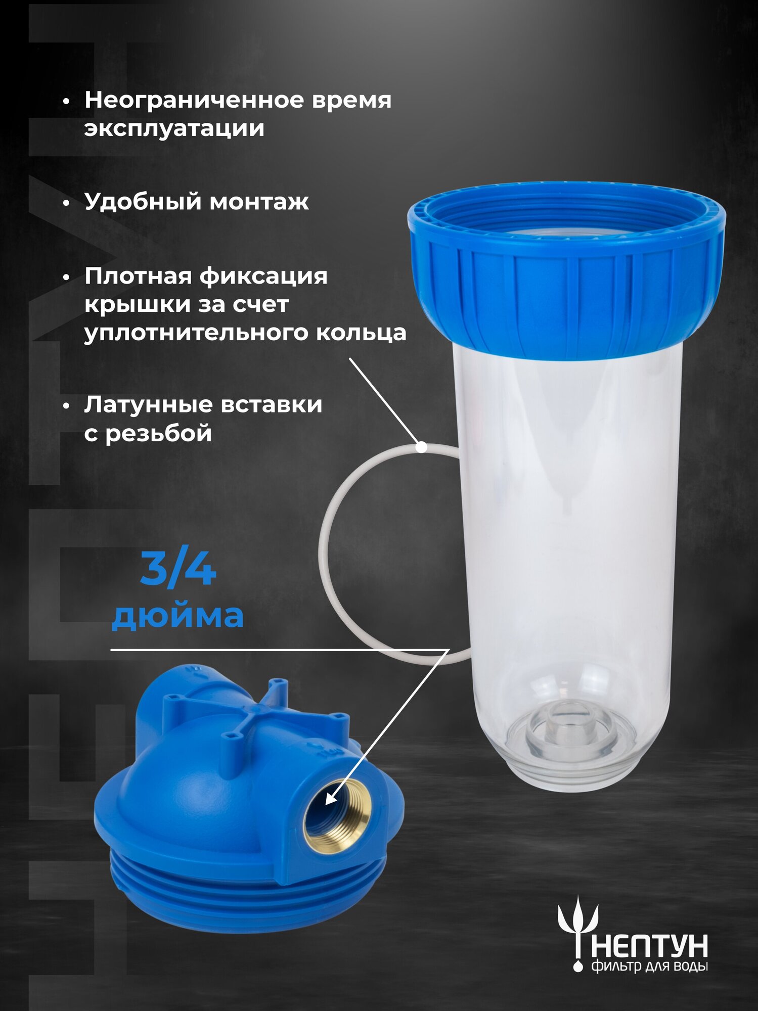 Отзывы на Корпус магистрального фильтра для холодной воды Нептун, резьба 3/4" + ключ и крепление, BP-10, прозрачная колба трехкомпонентная, формат Slim Line 10