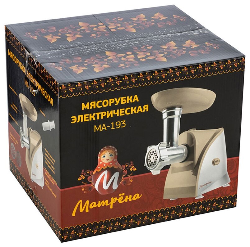 Матрёна Мясорубка "Матрёна" МА-193, 1700 Вт, 2 кг/мин, реверс, бежевая
