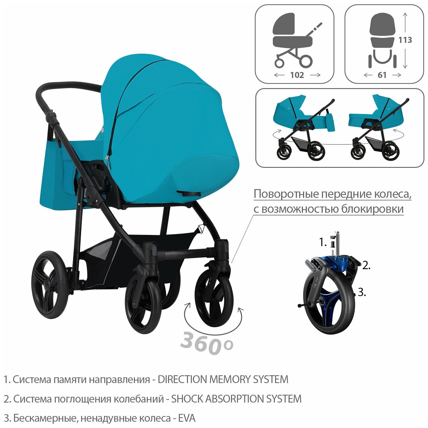 | Колеса | 4 шт., EVA, 24-30 см |