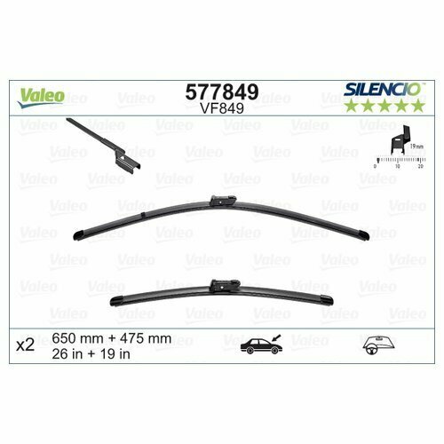 Valeo / 577849 / Комплект щеток стеклоочистителя Silencio бескаркасных 650/26`+470/19` (узкая верхняя кнопка)