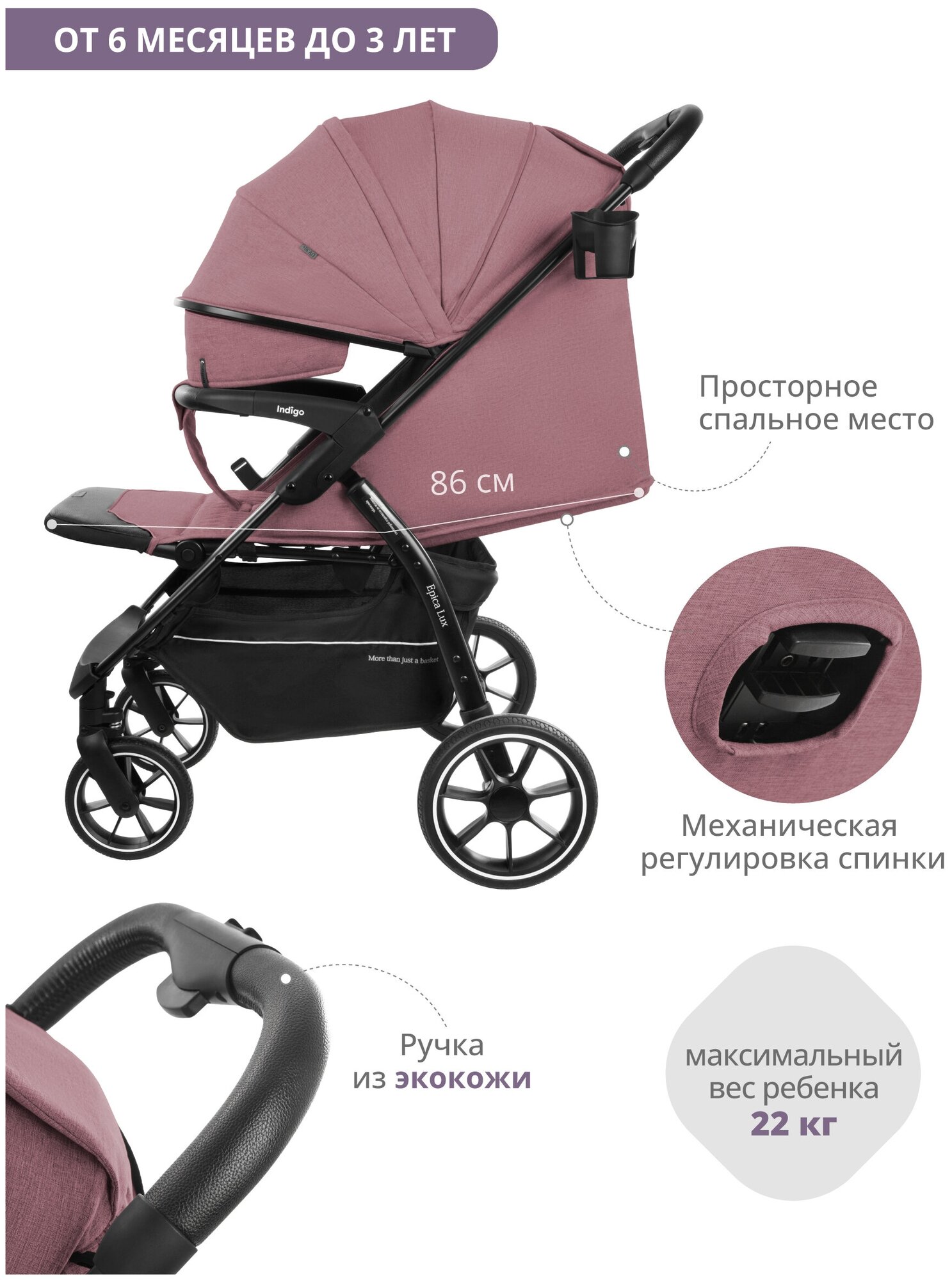 Коляска прогулочная Indigo EPICA LUX S розовый 4627183288009 информация: