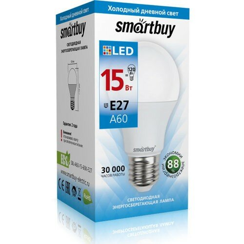 Лампа светодиодная E27/6000/15 (SmartBuy A60-15W/6000/E27) информация:
