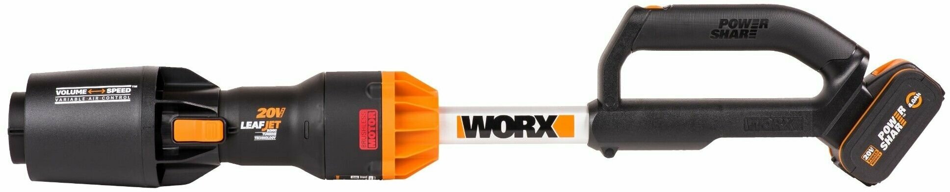 Воздуходувка аккумуляторная бесщеточная WORX WG581E, 40В, 4 Ач х2, двойное ЗУ 2x1A.