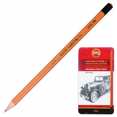 Карандаши чернографитные KOH-I-NOOR, набор 12 шт., "Art", 8В-2H, без резинки, металлическая коробка, 1502012008PL, 180809 1 558 ₽