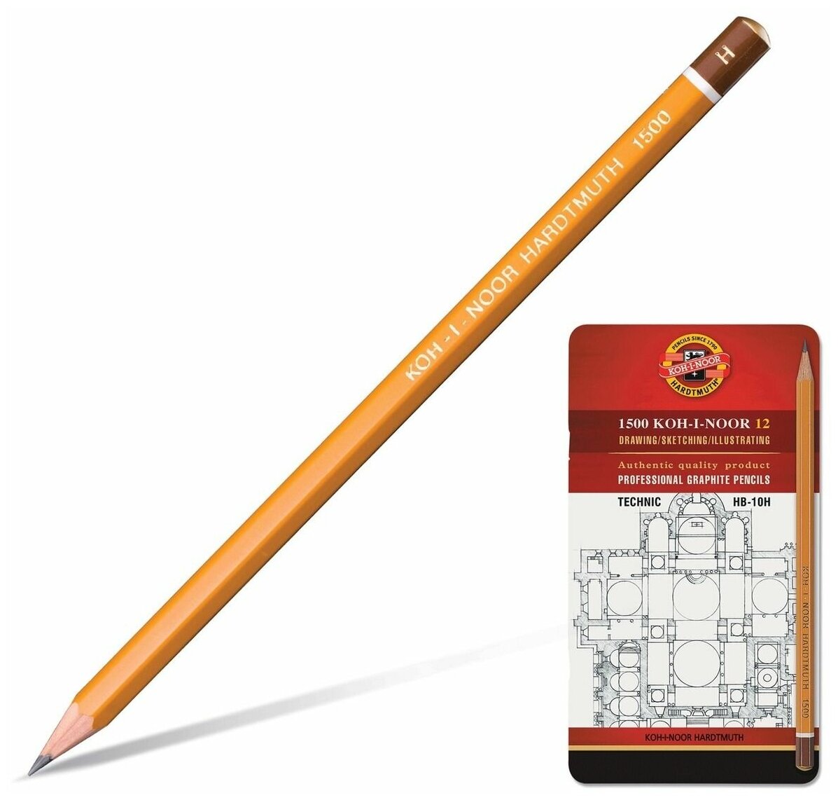 10 цен на Карандаши Koh-I-Noor 1502/I «Техник» чёрнографитные разной твердости , HB-10H, в металлическом пенале