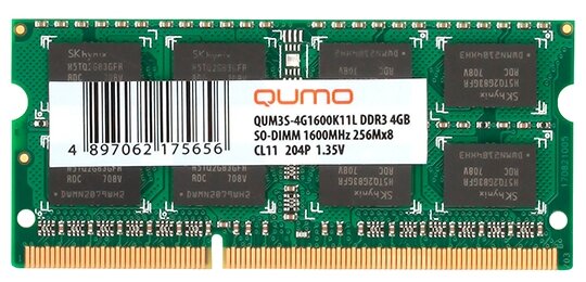 Оперативная память SO-DIMM QUMO 4GB DDR3-1600 (QUM3S-4G1600K11L) информация: