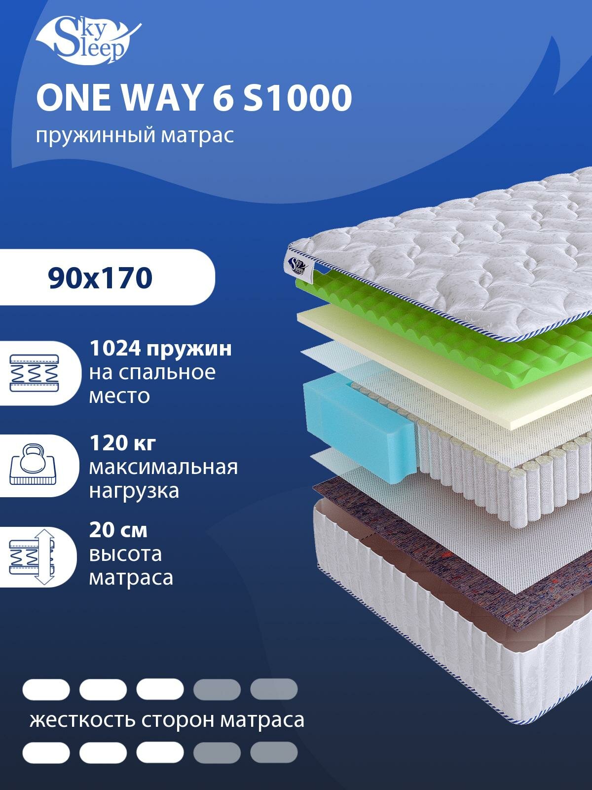 Односторонний ортопедический матрас SkySleep ONE WAY 6 S1000 на кровать 90x170 информация: