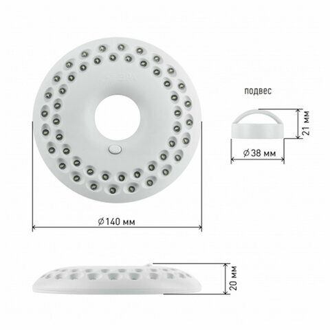 Фонарь туристический ЭРА 48xLED, крепление карабин, магниты, питание 3xAA (не в комплекте), KB-601, Б0029178 информация: