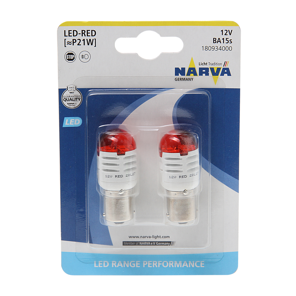 NARVA 180934000 Лампа LED P21W 12V 1,75W BA15s red (блистер 2шт.)
