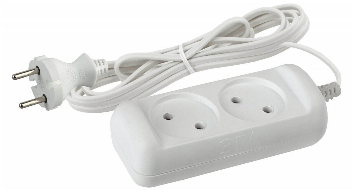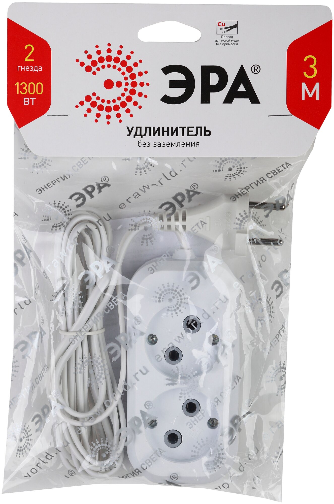 Удлинитель ЭРА U-2-1,5m (Б0028359), 2 розетки, 1.5 м, б/з, 10А / 2200 Вт
