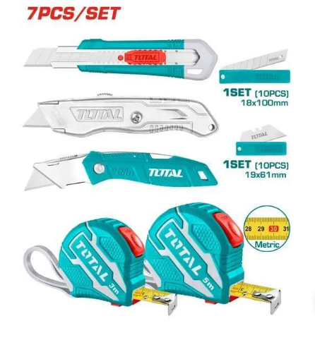 Отзывы на Набор инструмента 7 предметов (рулетки, ножи строительные) TOTAL TOS23037