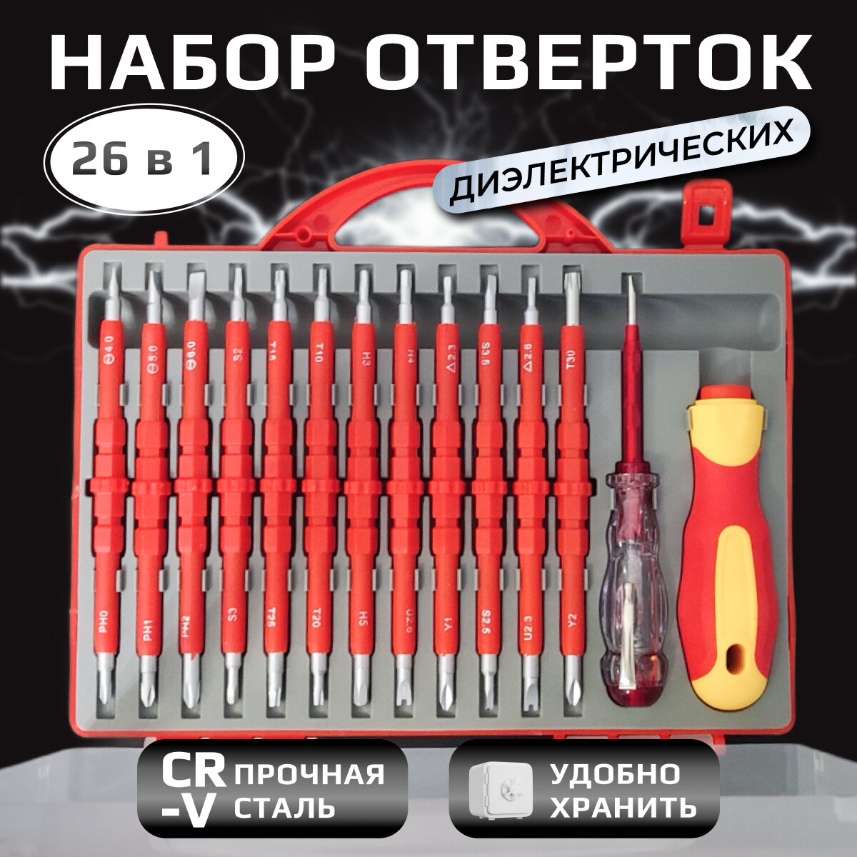 Отзывы на Набор высоковольтных диэлектрических отверток с индикатором 26 предметов, прецизионные съемные магнитные