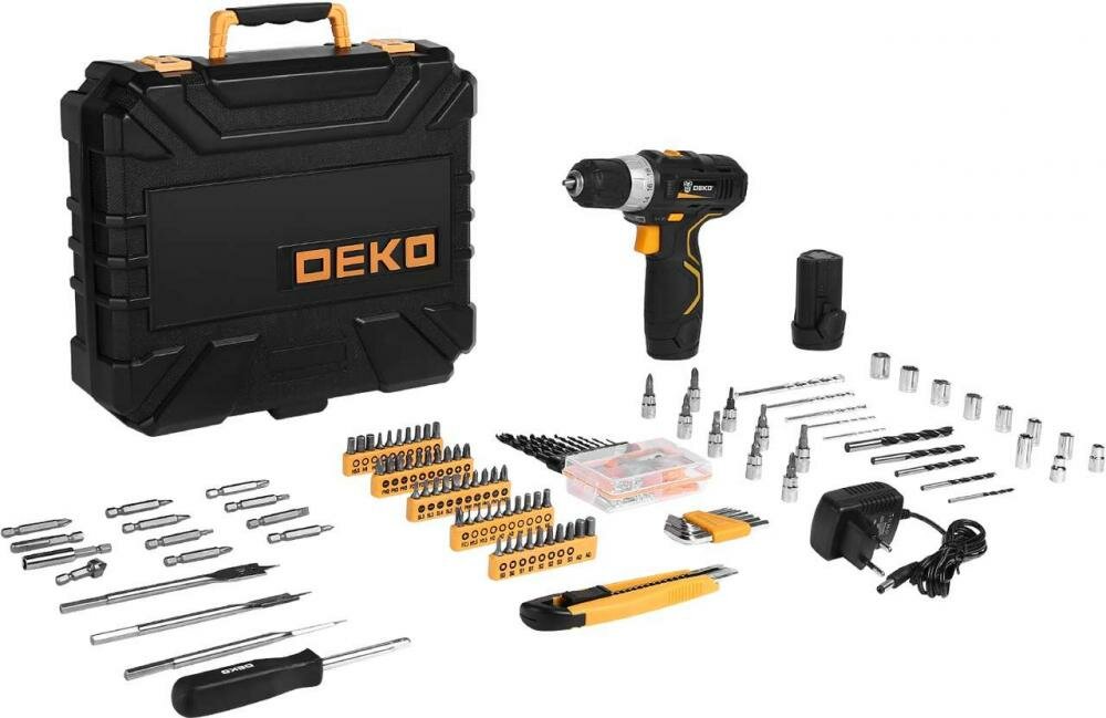 10 цен на Аккумуляторная дрель-шуруповерт DEKO GCD12DU3 в кейсе + набор 193 инструмента для дома, 12В, 2х1.5Ач 063-4138
