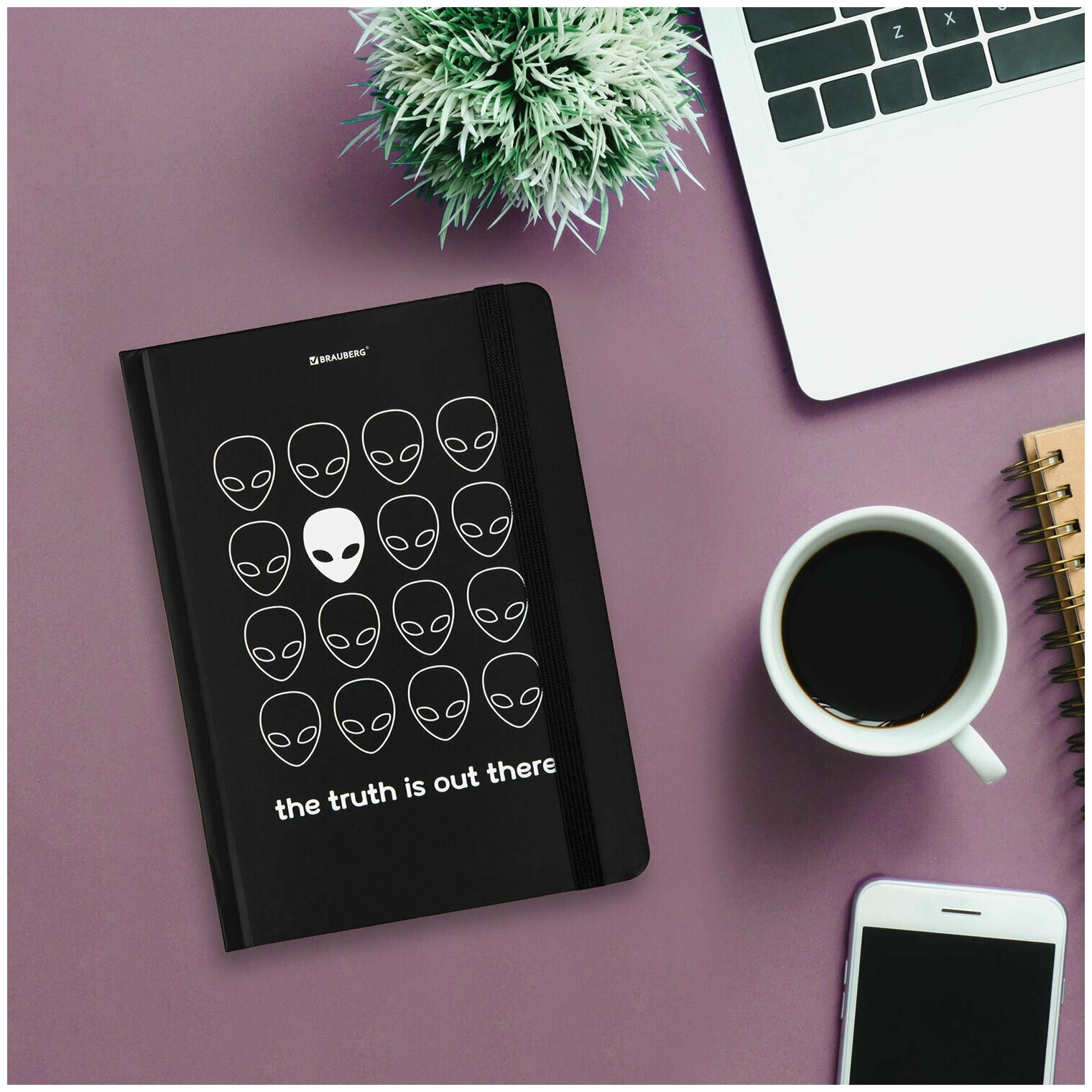 Блокнот с резинкой в клетку 96 л., А5 (145х203 мм), твердая обложка, BRAUBERG, "Aliens", 113722 (арт. 113722) информация: