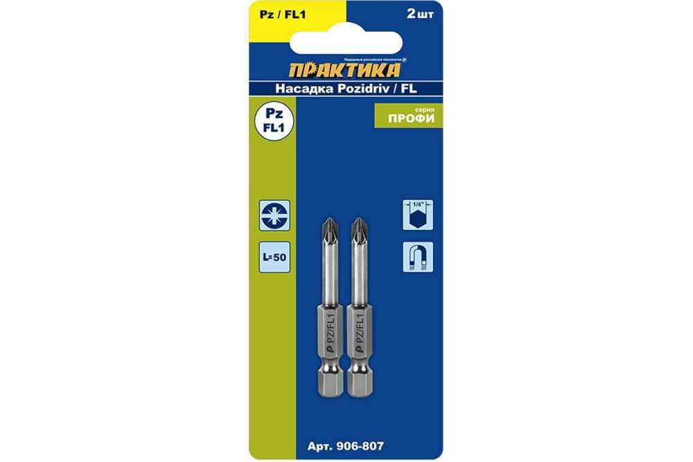 Отзывы на Практика Бита отверточная "Профи" PZ/FL1x50мм 2шт для электротехнических работ 906-807 .
