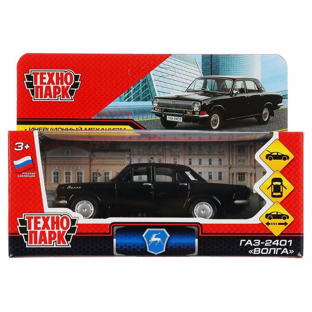 Технопарк 2401-12-BK 299335 Машина металл ГАЗ-2401 волга длина 12 см, двери, багаж, инерц, черный, кор. Техноп