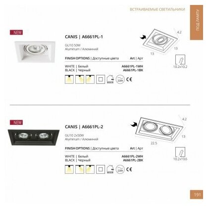 Встраиваемый светильник Arte Lamp Canis A6661PL-1BK, GU10, кол-во ламп:1шт., Черный информация: