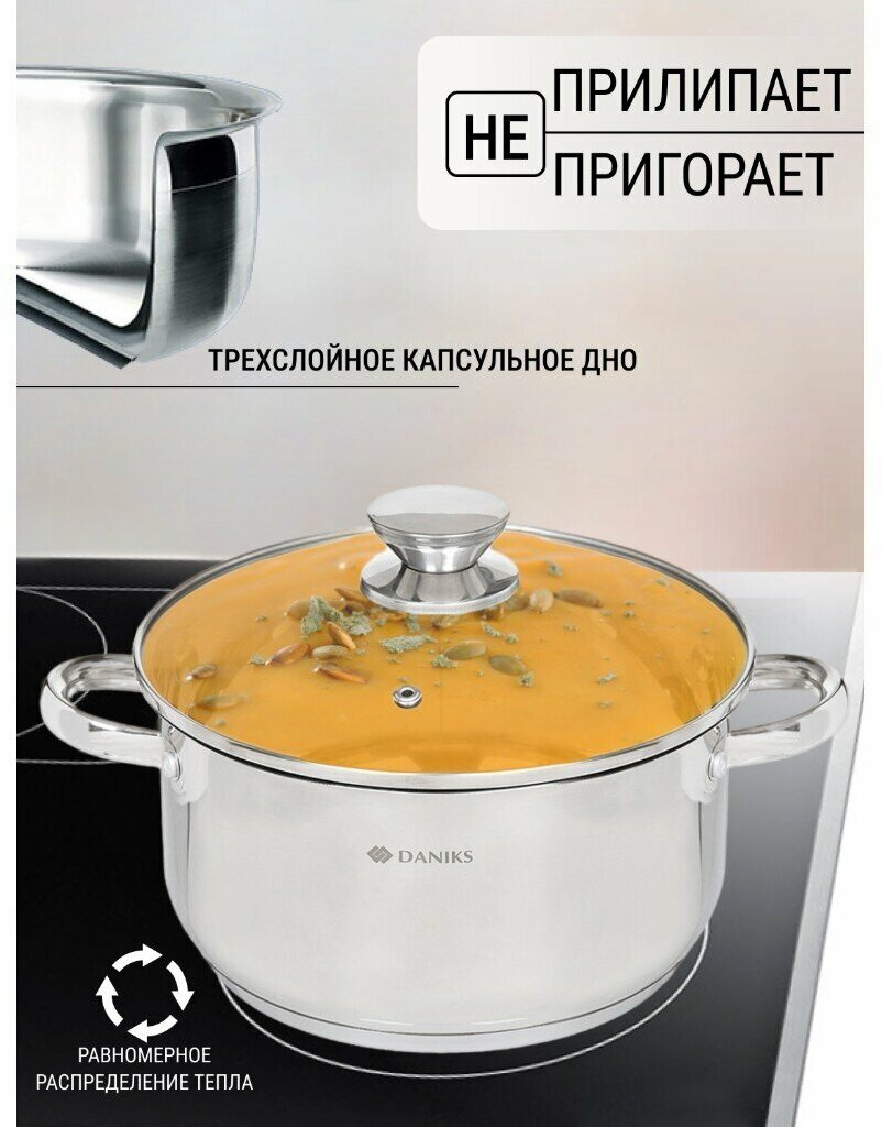 Daniks 377970 Кастрюля из нержавеющей стали оптима 5,4 л со стекл крышкой 332356/Кастрюля/Нержавеющая сталь/Для приготовления информация: