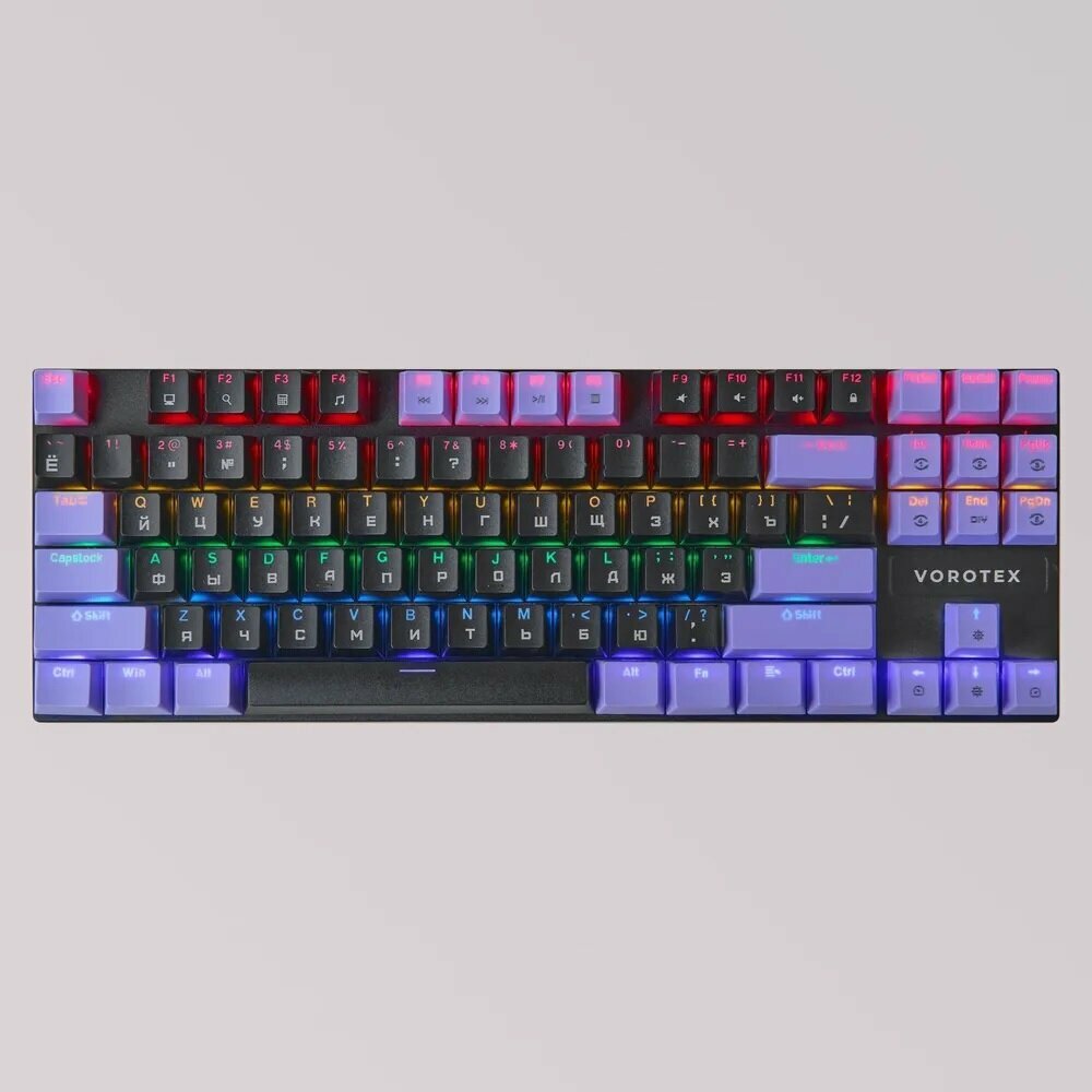 Клавиатура игровая проводная VOROTEX K87S Blue Switch, русская раскладка (Чёрный,фиолетовый) 3 390 ₽