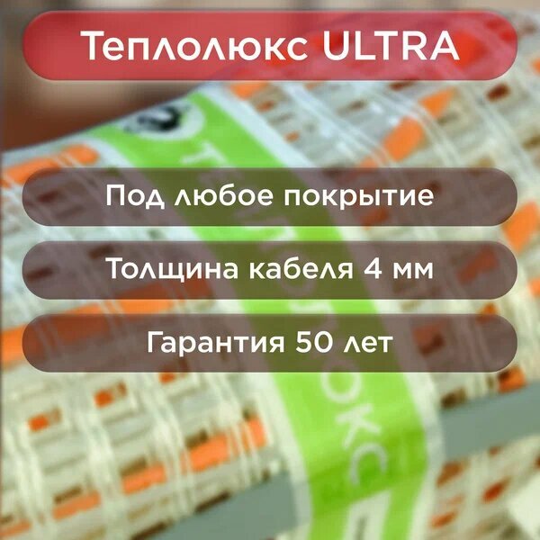 Теплый пол нагревательный мат Теплолюкс ULTRA 1,5 кв.м 170 (260) Вт информация: