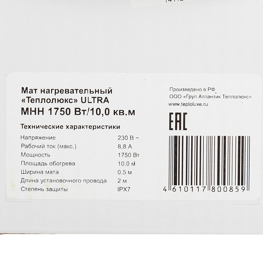Теплый пол нагревательный мат Теплолюкс ULTRA 10 кв.м 170 (1750) Вт информация: