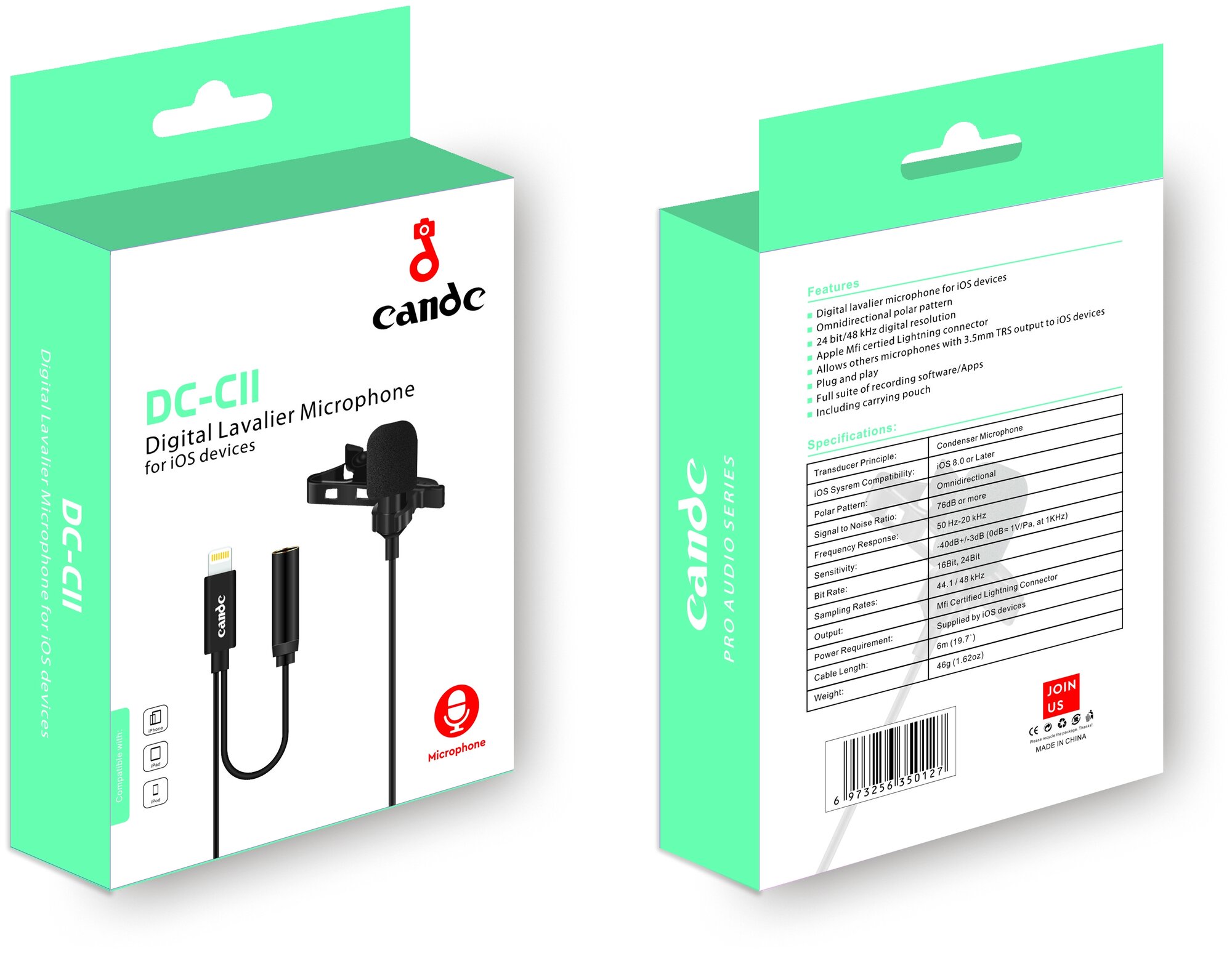 Микрофон CANDC DC-C10DM двойной, петличный, Lightning, черный